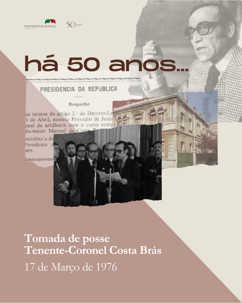 Há 50 anos, a 17 de março de 1976, o Tenente-Coronel Manuel da Costa Brás tomou posse como Provedor de Justiça, cargo que exerceu até 23 de julho do mesmo ano, data em que foi nomeado Ministro da Administração Interna. Sucedeu-lhe José Maria Barbosa de Magalhães Godinho, que tomou posse em 12 de novembro de 1976.
